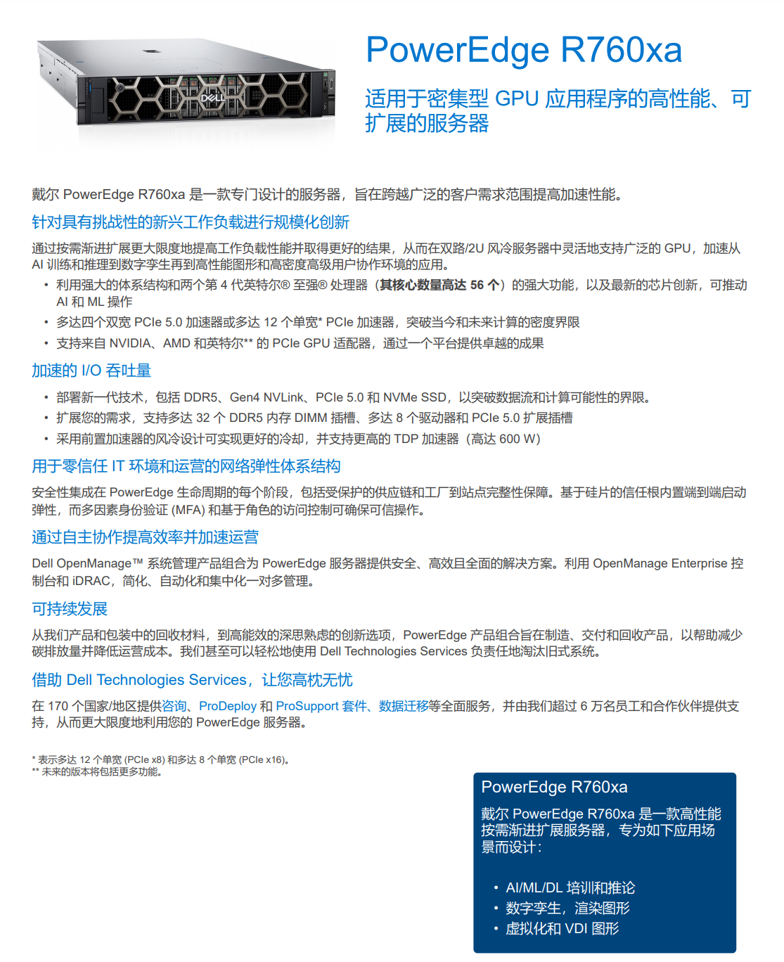 戴爾 PowerEdge R760xa 是一款專門設計的服務器,旨在跨越廣泛的客戶需求范圍提高加速性能。
