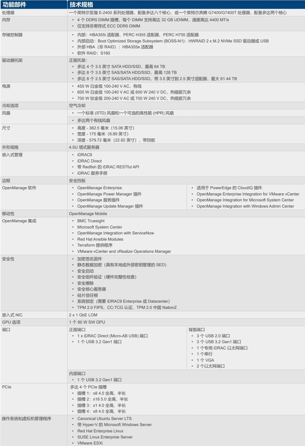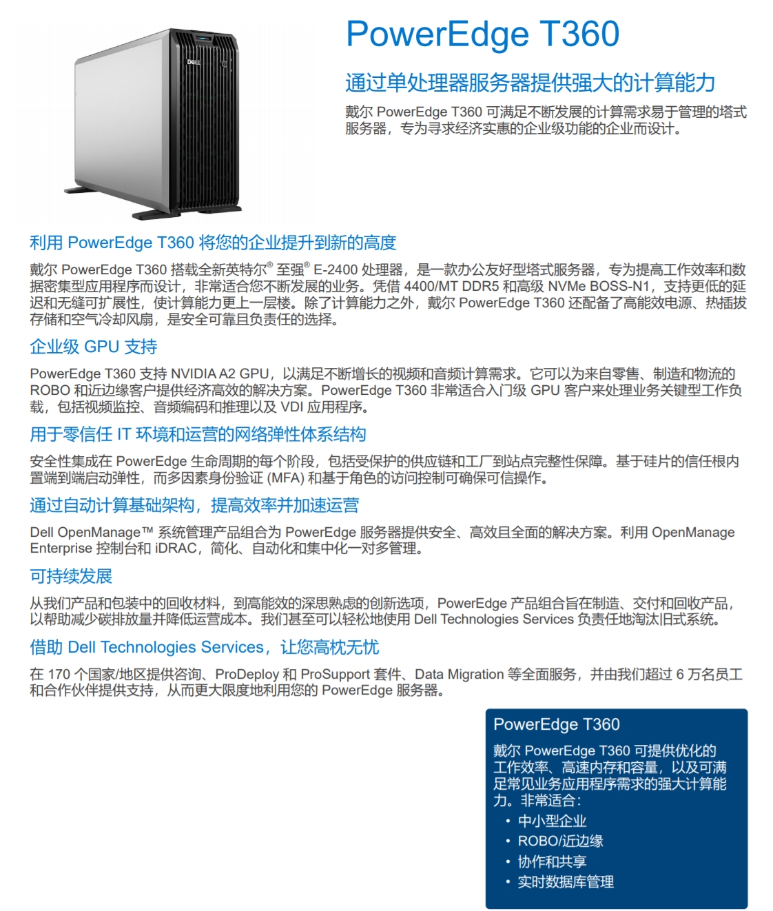 4.5U 單路 PowerEdge T360 的外形規格經過專門設計,非常適合需要多功能性、經濟性和處理能力的客戶。