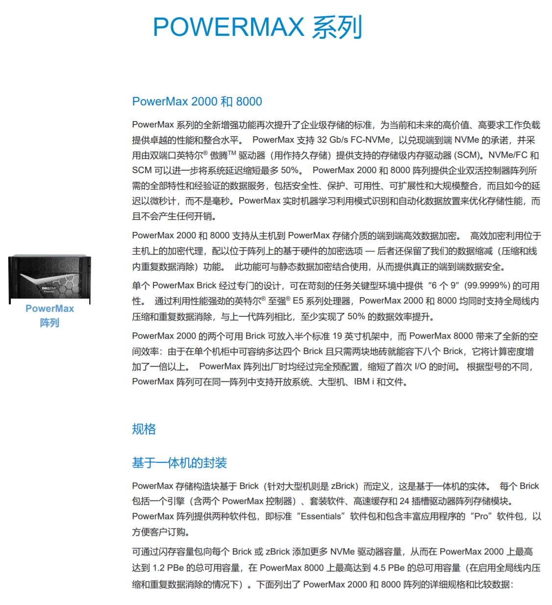 PowerMax 2000 和 8000 支持從主機到 PowerMax 存儲介質的端到端高效數據加密。 高效加密利用位于主機上的加密代理,配以位于陣列上的基于硬件的加密選項 — 后者還保留了我們的數據縮減(壓縮和線內重復數據消除)功能。 此功能可與靜態數據加密結合使用,從而提供真正的端到端數據安全。