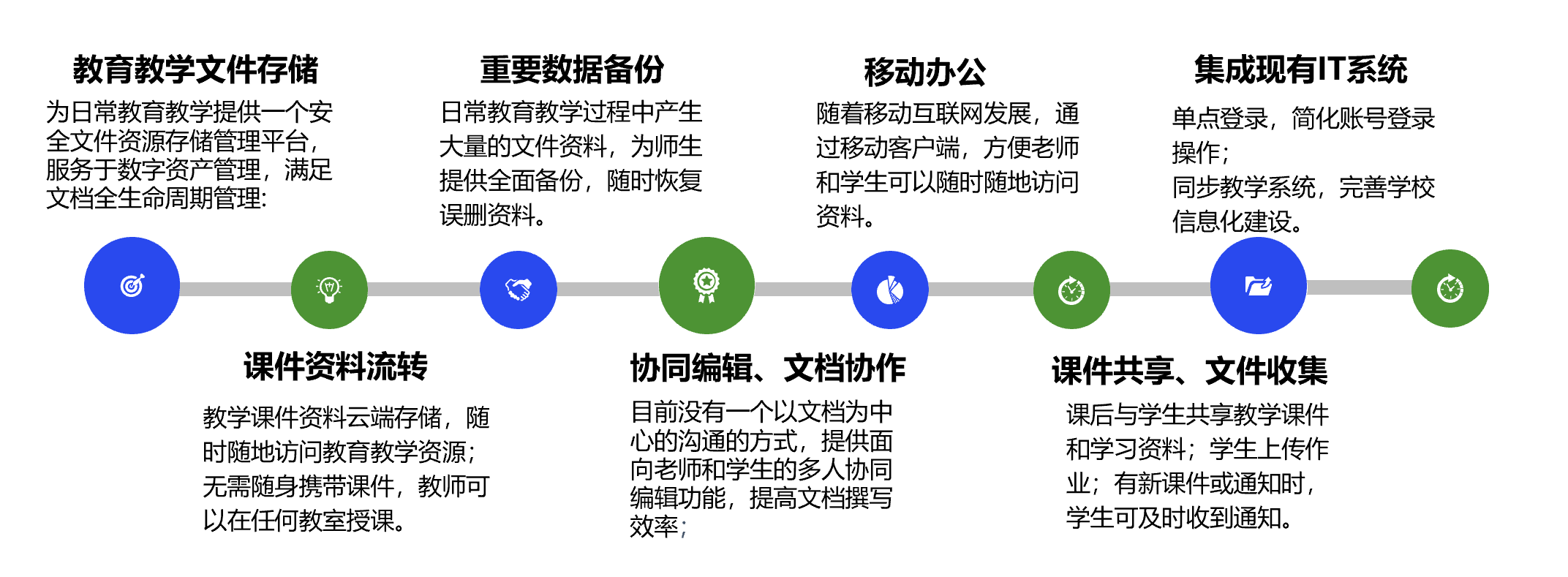 隨著近年來師生間文件數據容量的不斷增長,文件共享的方式愈加豐富與頻繁,之前建設云盤的功能已無法滿足師生對本地資料備份、課件傳輸分享、瀏覽器訪問、移動化辦公,當下文件流轉等文件管理多樣化的應用需求,系統后期運維缺少技術支撐。